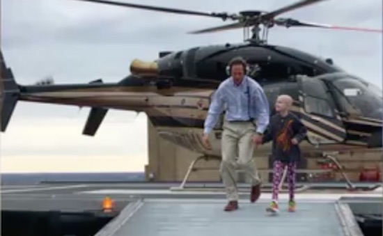 Beckett’s spirits have never been dampened since he was diagnosed with bone cancer in June 2016. So as a way of brightening up his weekday appointment, a classmate’s mother and Whit Baldwin, president of HeloAir in Sandston, Virginia, arranged for the special lift.
