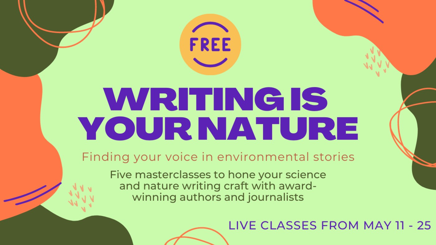 From poetry to reporting to pitching articles to journals, “Writing is Your Nature” features six notable conservationists and journalists, each hosting 60-minute classes that provide the writer with the skills needed to produce gripping content that speaks the language of the natural world in elegant and understandable ways.