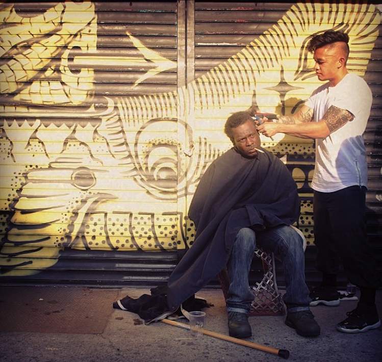 Every weekend, a stylist from an upscale salon in New York City wanders the streets to find someone who would appreciate a free haircut.