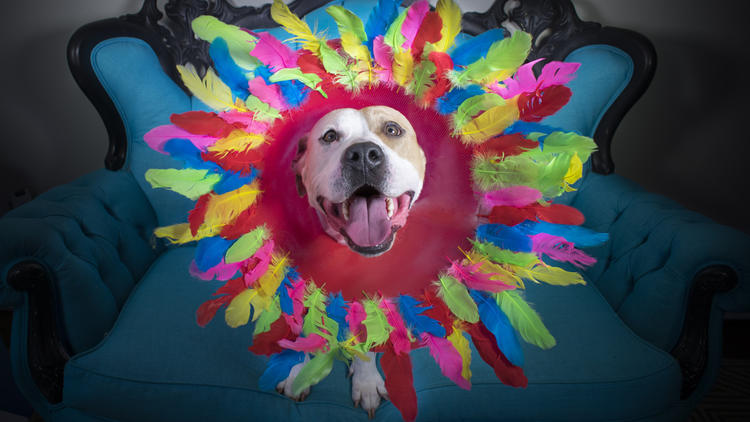 The 30-year-old student knew that she wanted her final portfolio project to somehow be canine-related; so, she hit the craft store, spent $200 on colored feathers, glitter, and rhinestones, and she got to work.