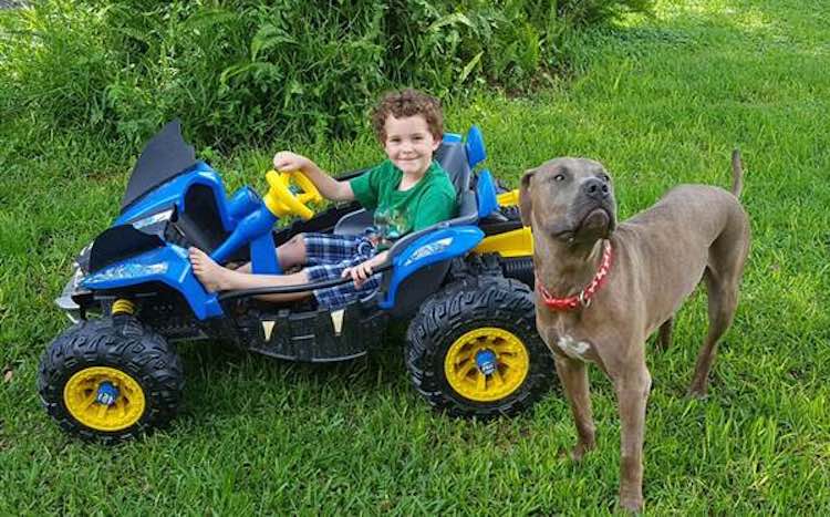 Last week, Slayer and Paco the pit bulls were playing in the yard of their home with their owner’s grandchildren: 4-year-old Zayden and 1-year-old Mallory.