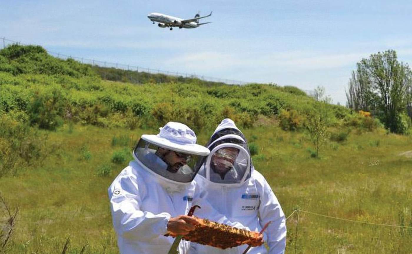 What’s black and yellow, makes a buzzing sound, produces honey—and lives at an airport? Don’t let that last part fool you, these bees have found a great new home.
