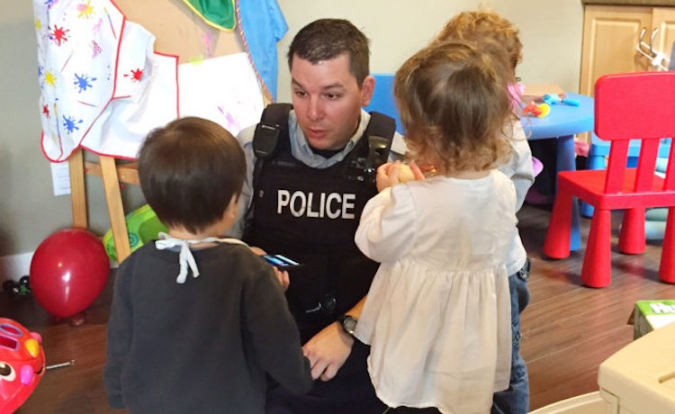 Three Canadian police officers aren’t just good at protecting and serving – they’re pretty good at babysitting too.