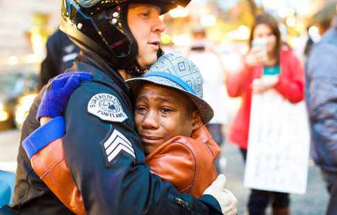 The story behind the hug: @PortlandPolice and 12-year-old boy. http://t.co/iVUDq5qkFz #ferguson pic.twitter.com/XWk4WuZuVm