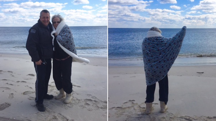 The police decided they could drive her through the thick sand that leads to the seashore, and Officer Holloway used a 4-wheel drive cruiser to undertake that mission of compassion earlier this week. She was able to get out and stand on the shoreline, while her family took memorable photos.