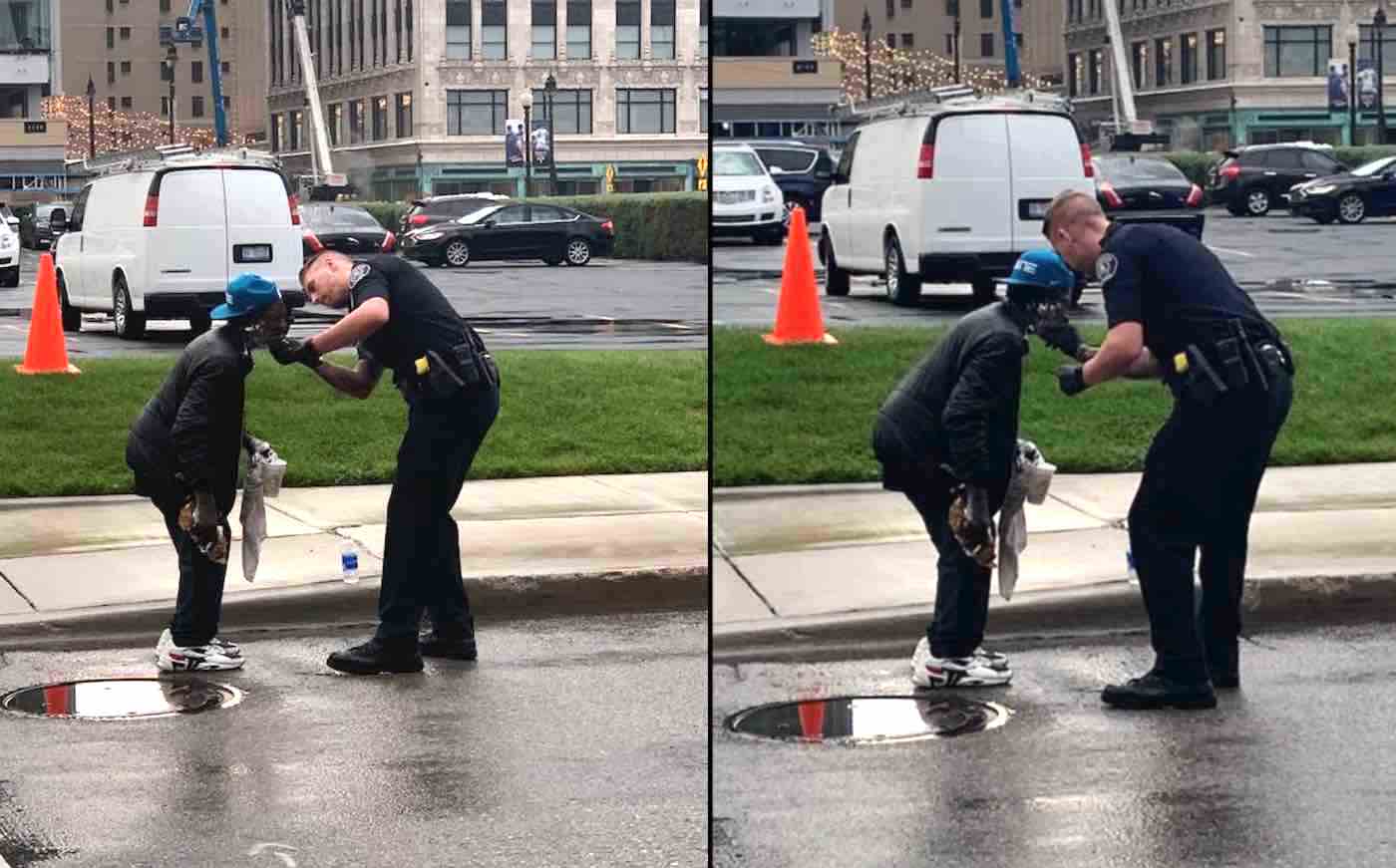 A Detroit police officer is being praised for reaching out to help a homeless man who had been having trouble shaving his facial hair on the street.