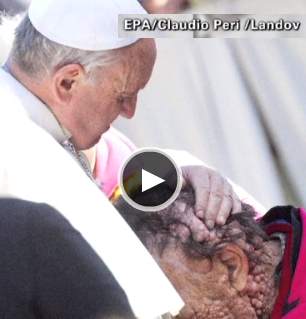 Pope Francis’ embrace of a severely disfigured man has touched world.