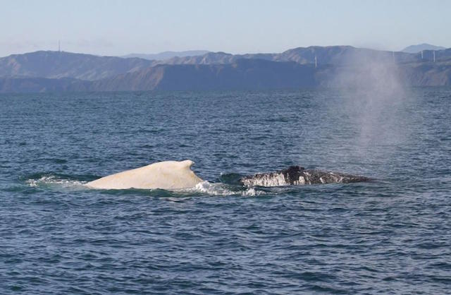 The rare white whale that’s been spotted recently is believed to be “Migaloo,” an aboriginal word meaning “White Fellow.” The whale was first discovered off the Australia’s Gold Coast in 1991 and has returned there almost every year since. It’s the first time he’s been sighted in New Zealand.