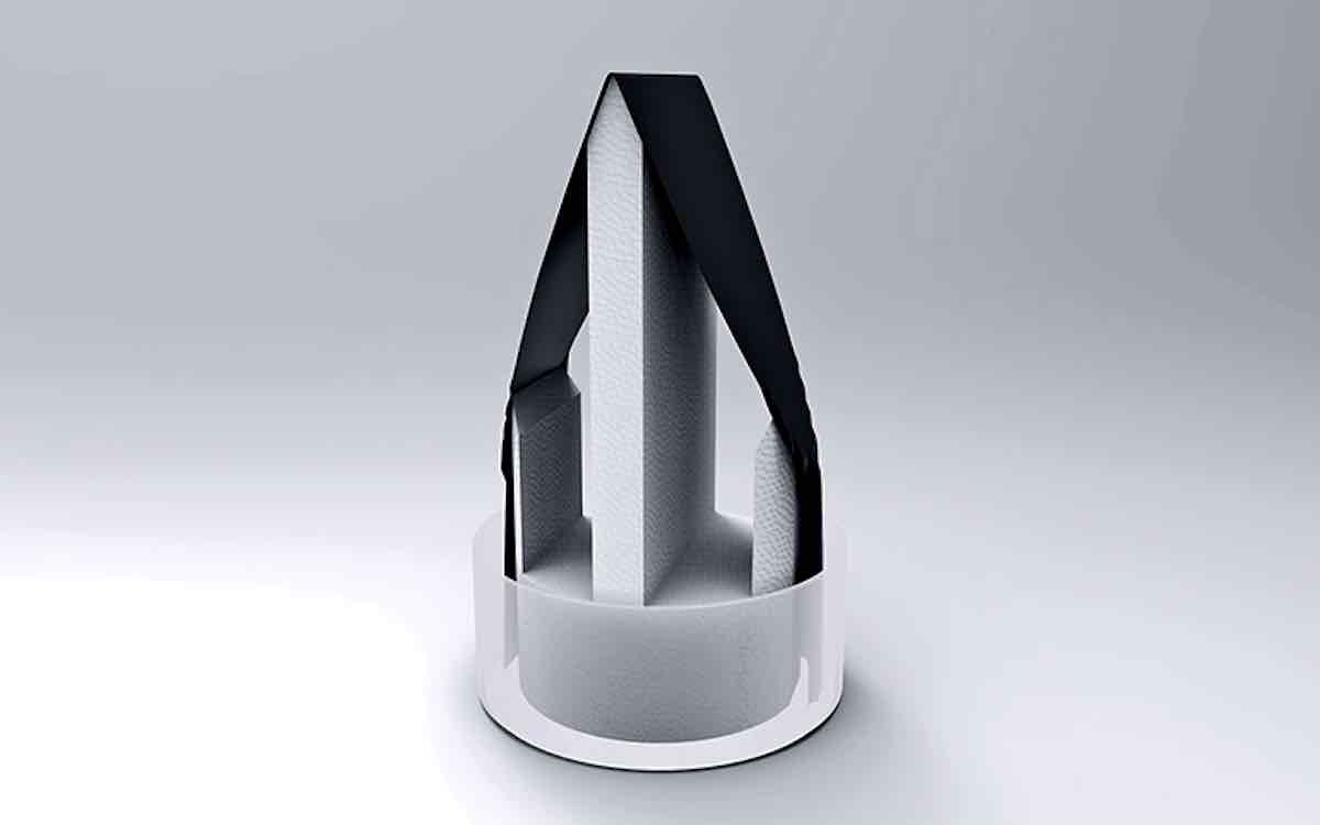 A central component of their technology is a sheet of carbon-dipped paper that is folded into an upside-down “V” shape, like the roof of a birdhouse. The bottom edges of the paper hang in a pool of water, soaking up the fluid like a napkin. At the same time, the carbon coating absorbs solar energy and transforms it into heat for evaporation.
