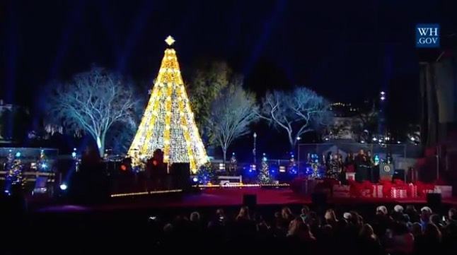 Barack Obama, his two daughters, and Michelle switched on the National Christmas Tree with some help from actress Reese Witherspoon and the musical guests.