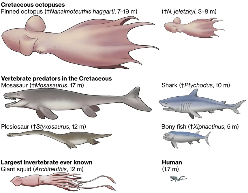 Recovering a selection of truly revolutionary fossils from sediments in Japan and Vancouver Island, the researchers present a prehistoric octopus that could grow as long as 60 feet, and use its powerful jaws to grind bones.