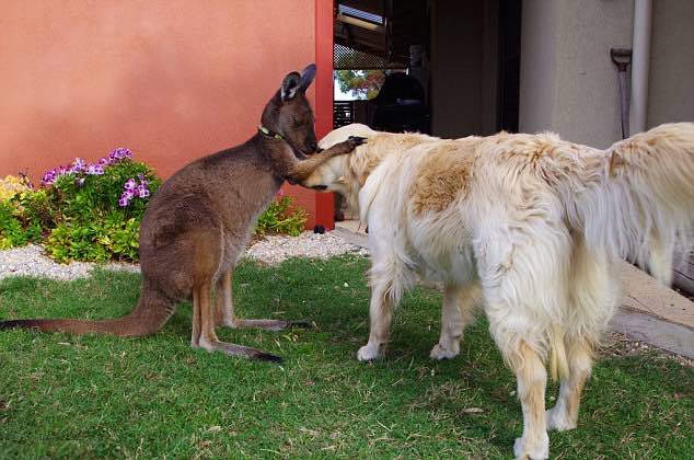 From the instant Mr. Steward brought home the orphan two years ago, the family’s golden retriever and border collie have loved “their kangaroo”.