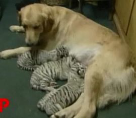 Lots of people wrote in telling me to link to the photo and story of the Golden Retriever nursing three newborn striped tiger cubs that were abandoned by their mother.
