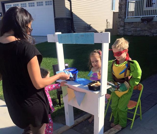 Haylen, who’s favorite flavor is Kit-Kat, sometimes gets help from his three-year-old sister Farah and neighbors who donate ice cream to the stand.