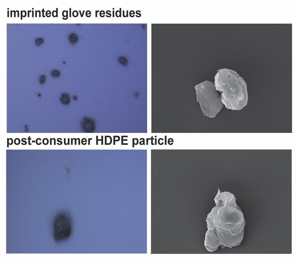 The researchers also designed another experiment to determine whether they were able to distinguish what a true microplastic looked like versus one of the stearate salts from the gloves using scanning electron microscopy as well as light-based microscopy.