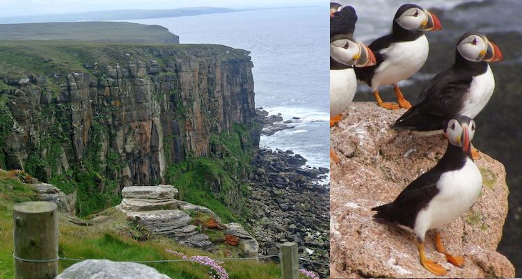 Sitting on a rugged peninsula with 300-foot tall cliffs, the site is a natural “seabird city,” drawing tens of thousands of puffins, guillemots, razorbills, fulmars and kittiwakes.