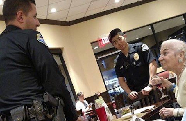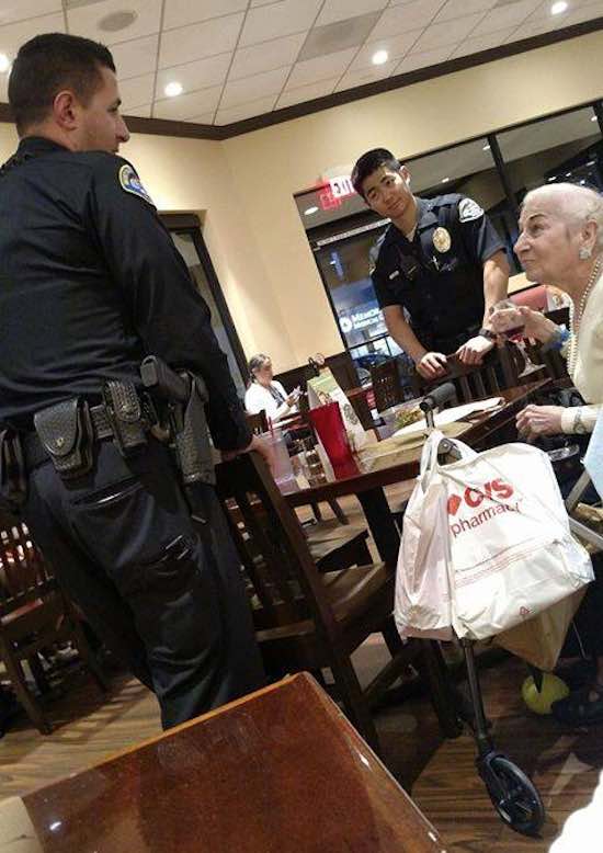 This sweet old senior was eating dinner when she suddenly forgot how she could get home – luckily, these boys in blue were there to accompany her.