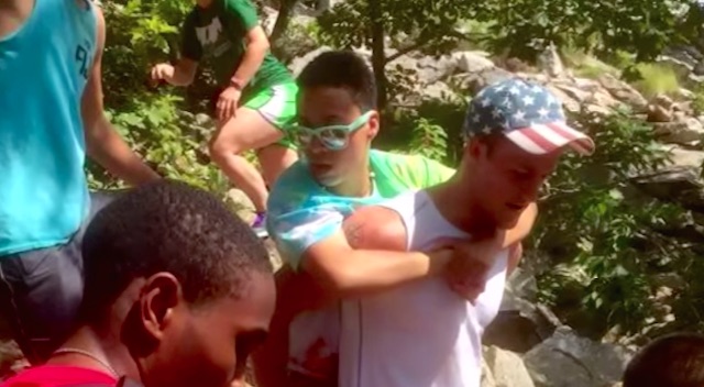 That is, until six guys from the school’s fraternities volunteered to carry her up the mountain themselves at the suggestion of DeAsia’s sorority, Sigma Sigma Sigma.