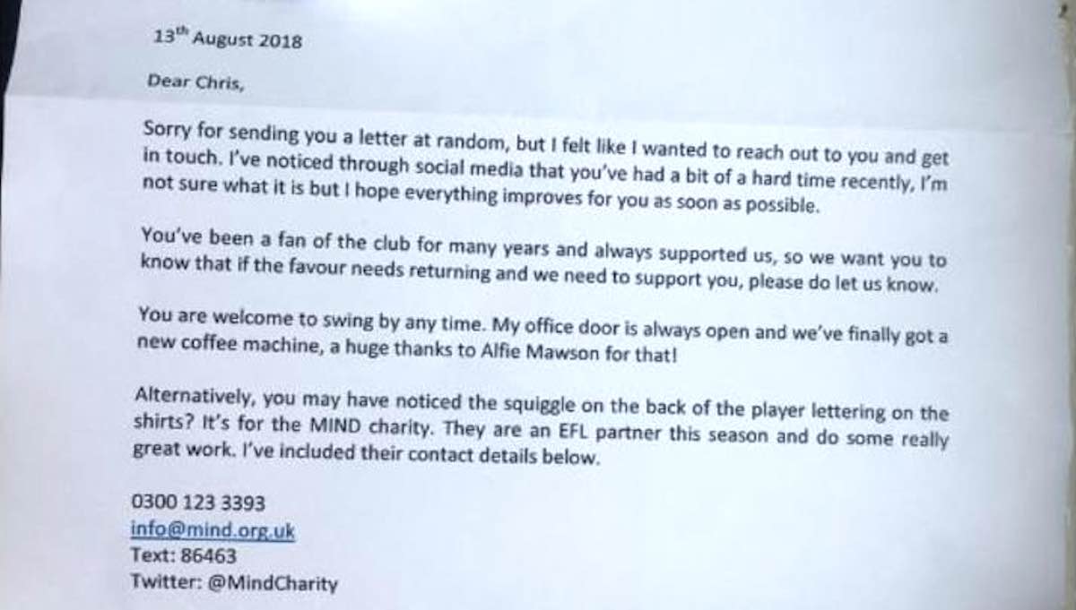In the letter, Ganaye said that his “office door is always open” and the League One team would love to “return the favor” for his loyalty as a fan.