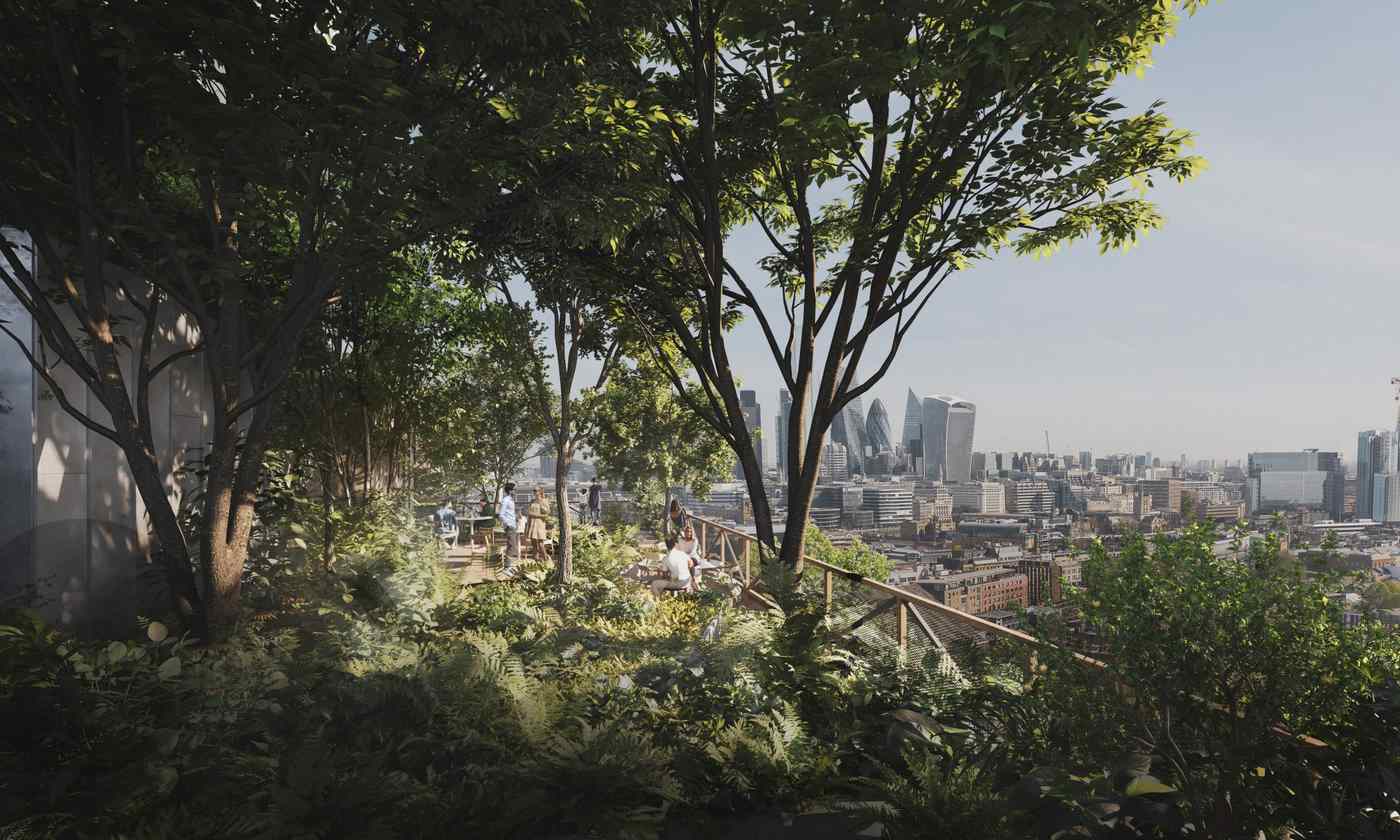 From the top of the 1.4 acre urban woodland, visitors will have an exceptional view of The Shard and the whole London skyline.