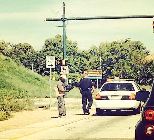 “Just seen an Indy police officer pull over,” Hibbert described on his Instagram account. “Go into his trunk n give a homeless guy a pair of shiny boots.”