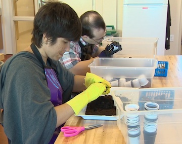 The center provides jobs for adults with intellectual disabilities and its director says the recycling project helps to improve their people’s work skills.