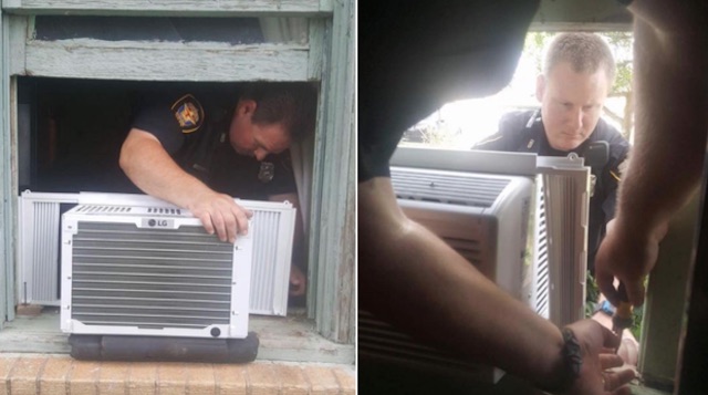 The officers then went to Home Depot and asked the employees which unit would be best for Hatley’s house. The store employees were so touched upon hearing about the veteran’s situation, however, that they decided to throw down $150 of their own money so they could split the cost of an air conditioner with Margolis.