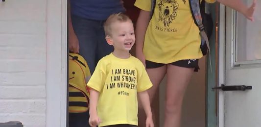 This 4-year-old cancer survivor was given the surprise of a lifetime after his neighbors rallied together to provide a rainbow of yellow, one mile long, outside his house the morning of his birthday.