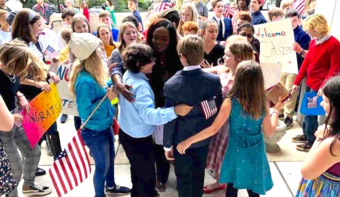 So when it was finally time for her to earn her US citizenship last week, she was surrounded by dozens of her current and former students cheering her on.