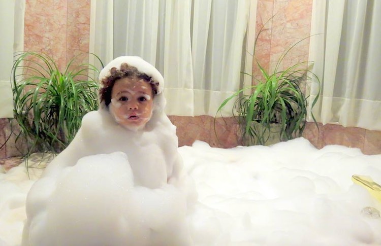 The stunned tot wisely assessed the situation before replying innocently, “What bubble bath?”