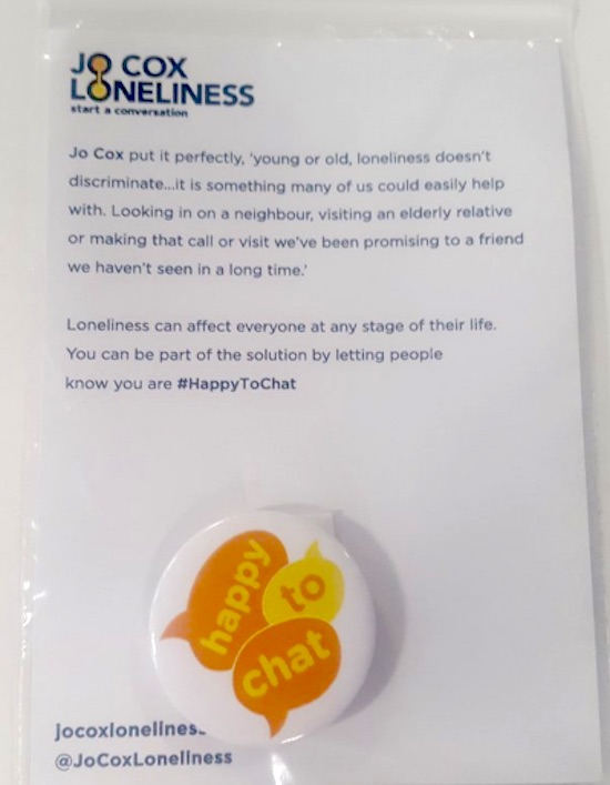 “Jo Cox put it perfectly ‘young or old, loneliness doesn’t discriminate… it is something man of us could easily help with. Looking in on a neighbor, visiting and elderly relative, or making that call or visit we’ve been promising to a friend we haven’t seen in a long time.’