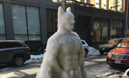 The color of the snow may not make him the darkest knight around, but this ice Batman is still the coolest thing on Boston’s streets this week.