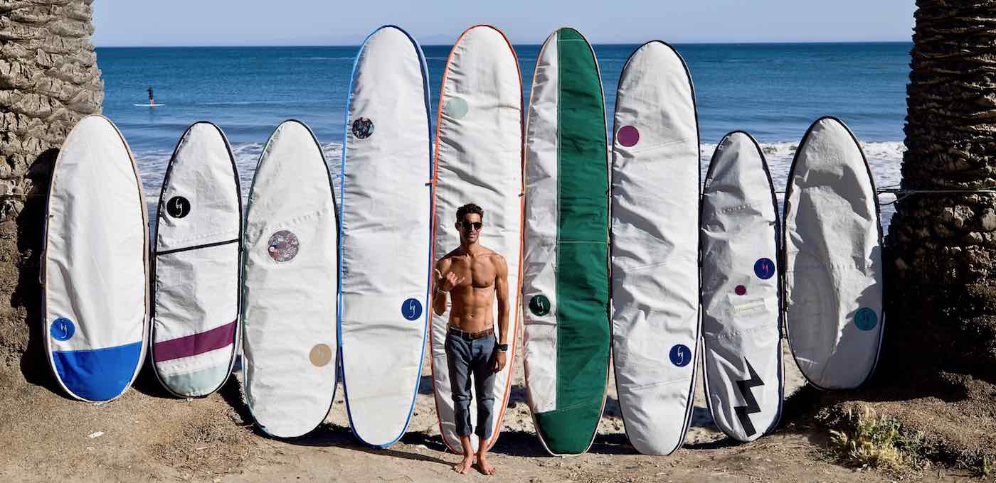 On a sleepless night in 2011, a Southern California surfer was staring at his quiver of surfboards unhappy with the quality and integrity of the bags that protected them. They were unimaginative, all manufactured overseas, and none of them used recycled material. Then, his gaze fell to an old sail lying on the floor. It was part of a set design destined for the stage—and, later, the landfill. He suddenly had an idea.