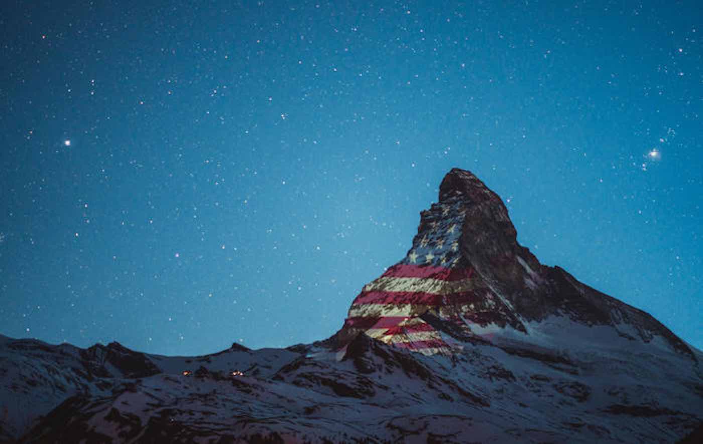 Now on every night since March 24th, the Matterhorn has displayed the flag of France, the US, India, Japan, Germany, the UK, Portugal, Spain, and many others.