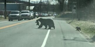 Watch a Mama Black Bear Struggle Hilariously to Get All Four Cubs Across The Road