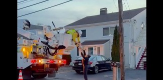 Bucket Truck Used to Rescue Seagull Entangled in Utility Wires (WATCH)