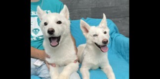 Snowy Husky Pups Get Adopted Together After Being Thrown Over Shelter Fence
