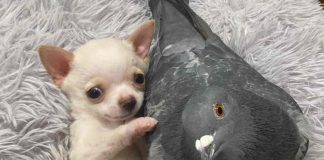 Paloma que no Puede Volar Crea una Adorable Amistad con un Cachorro que no Puede Caminar