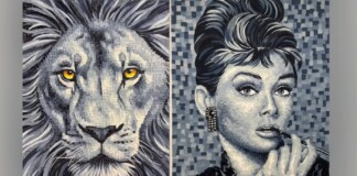 Artist Creates Striking Portraits Out of Old Denim Jeans Cut into Tiny Pieces (WATCH)