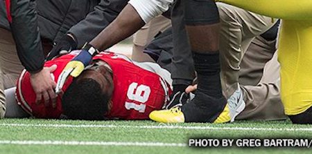 Univ Michigan Quarterback Shows Sportsmanship for Injured Opponent