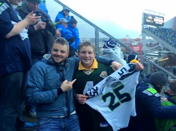 Seahawks Reveler Gives Shirt off Back to Young Packers Fan After Loss
