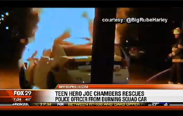 Heroic Teen Saves Cop Trapped In Police Car Engulfed In Flames