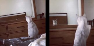 Watch Curious Cat Suddenly Discover That She Has Ears After Striking a Pose in the Mirror