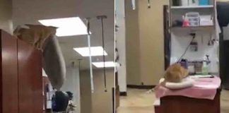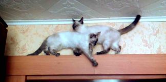 Watch Amusing Video of Two Cats Trying to Pass Each Other Atop a Narrow Doorframe
