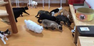 Watch Crowd of Curious Cats and Their Startled Reaction to a Fearsome Robot Vacuum