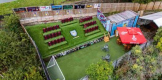 Soccer-Mad Pub Owner Turns Bar’s Garden into Mini Stadium Bedecked in Burney FC Memorabilia