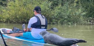 Observa el Momento en el que Esta Foca Salta Sobre la Parte Trasera de una Tabla de Paddle Surf Para dar un Paseo