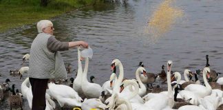 Woman Has Been Feeding Hungry Swans Every Day for the Last 10 Years After Dam Was Installed