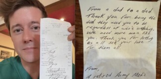 Stranger Pays Family’s Breakfast Bill and Writes Heartfelt Note Praising Dad