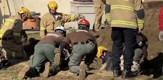 LA Firefighters Rescue 1200-Pound Horse Named ‘Lucky’ from Backyard Sinkhole (WATCH)